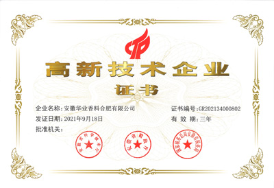 2011年公司改制更名成立安徽华业香料股份有限公司