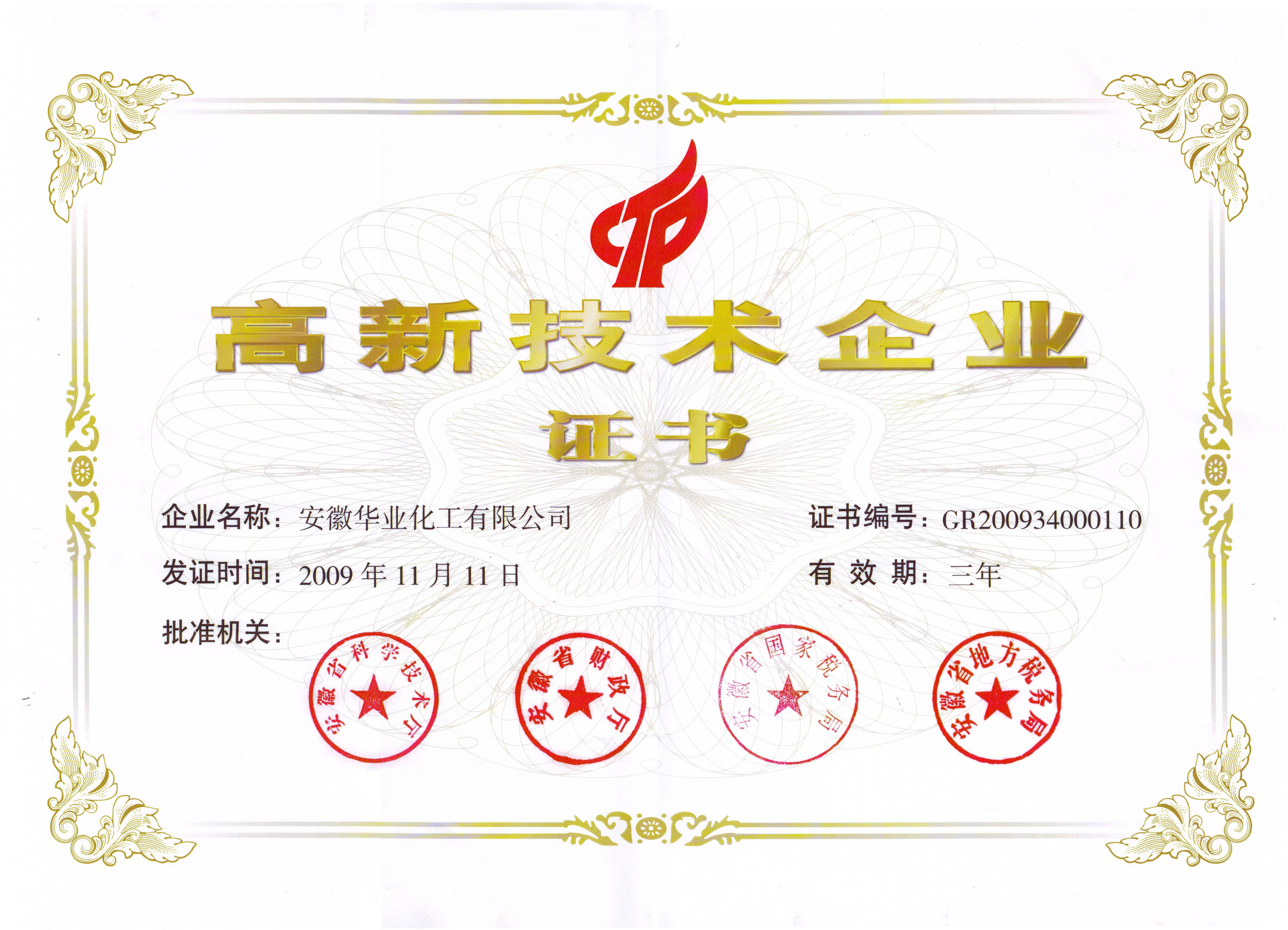 2009年首获安徽省高新技术企业