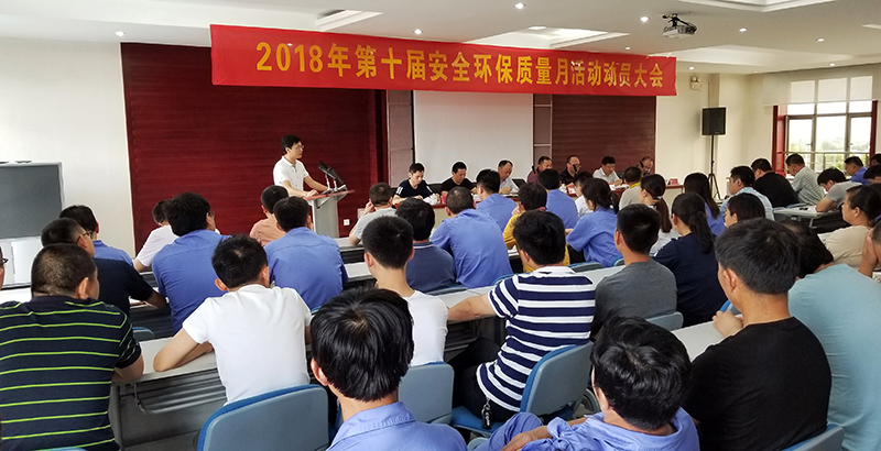 6月8日,公司2018年第十届安全环保质量月活动动员大会在四楼会议室隆重召开,以“生命至上、安全发展、环保优先、品质提升”为主题的第十届安全环保质量活动月拉开帷幕。县安监局、环保局、市监局、工会及县开发区安全办等领导莅临会议,公司总经理徐基平、副总经理储艳新、吴旭、王天义、汪民富、徐霞云及各部室、车间负责人和一线员工共计100余人参加了会议,会议由副总经理汪民富主持。