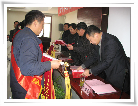 八点三十分,会议在雄壮的国歌声中开幕,总工程师范一义宣布获得2010年度优秀员工、优秀管理者、先进班组、先进集体和节能改造奖获得者名单,并号召全 体员工以先进集体和优秀员工为榜样,认真总结经验,学习先进,超越自我,在各自的工作岗位上努力工作,为公司的发展做出更大贡献。宣读结束,全体获奖人员 上台领奖,并和公司领导合影留念,获奖代表发表获奖感言,纷纷感谢公司和全体同事给予的宝贵荣誉,并表示在以后的工作中戒骄戒躁,扎实工作,再立新功。