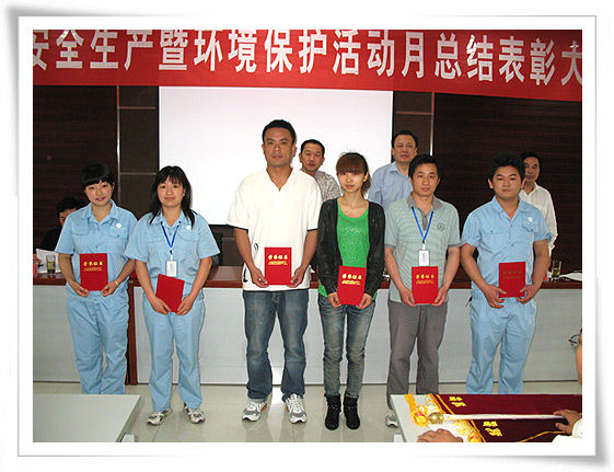 会上,总工范一义宣布了表彰决定,对活动月中表现突出的8个先进集体和21个先进个人进行了表彰,向获奖员工颁发了奖金、奖旗和证书。来自实验室的吴来楷 和丁位车间黄跃代表先进在会上做了活动月心得体会和经验交流。