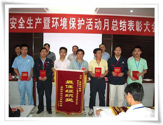 本刊讯(通讯员 一天)4月30日上午,华业化工2011年度安全生产暨环境保护活动月总结表彰大会,在公司四楼会议室隆重举行。会议总结了2011年安全环保活动月的经 验和不足,提出了改进的目标。同时对活动月期间涌现出的先进集体和先进个人进行了表彰。县安监局华局长、县环保局许局长等领导莅临会议,公司总经理徐基 平、总工范一义等公司领导出席会议。