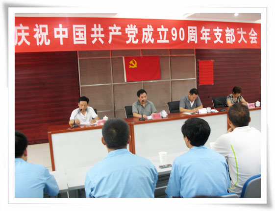 本刊讯(通讯员 靖淞)7月1日下午中共华业公司支部在大会议室召开庆祝建党九十周年大会,参加会议的有18名在册正式党员和3名预备党员,5名下一年度发展培养对象列席 会议,特邀公司总经理徐基平出席大会。六月中旬,支委会研究本着优中选优的原则,评选两名优秀党员, 6月17日经支部大会民主推荐,反复评选,最后一致举手表决,推举生产部经理吴旭同志、后勤勤杂工施加祥同志为优秀共产党员。会议在雄壮的国歌声中开始, 二位优秀党员胸戴红花,身披大红绶带在前排就坐。会议上,支部副书记汪靖淞带领大家学习了党的“七一”生日由来,中国共产党成立90年历史简要回顾,支部 委员李淑琴带领全体党员庄严地重温了入党誓词,并宣读了开发区党工委对二位预备党员转为正式党员以及三名培养对象转为中共预备党员的批复,中共华业支部关 于对二名优秀党员表彰奖励的决定。公司总经理徐基平、支部书记范一义共同为优秀党员颁发了荣誉证书以及奖金。优秀党员代表、新入党的党员代表分别做了个人 感想发言,支部书记范一义做了支部《践行科学发展观、力推创先争优活动新高潮》的支部工作报告,公司总经理发表了热情洋溢的讲话。对公司支部工作给予充分 肯定,也寄予希望为华业公司发展提供更大的动力源泉,明确表态赋予公司支部更多资源和全力支持工作。